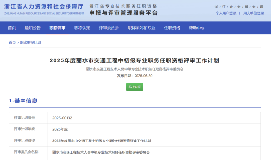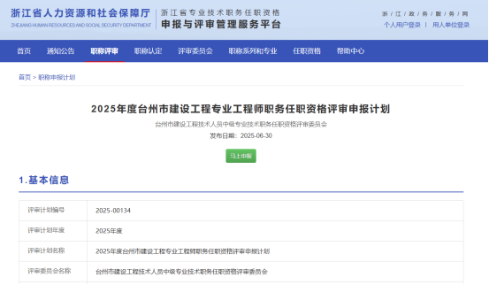 25年度浙江省建设工程正高级、台州市建设工程中级、丽水市交通工程中初级申报计划发布!发表时间:2025-07-01 16:28 01 25年度浙江省建设工程正高级职称申报计划发布 7月1日,浙江省建设工程技术人员正高级工程师职务任职资格评审委员会发布《2025年度浙江省建设工程专业正高级工程师职务任职资格评审申报计划》,对25年度浙江省建设工程正高级职称申报评审事宜作出相关规定安排。 ![]() 申报时间 个人申报开始时间:2025-07-07 00:00:00个人申报截止时间:2025-07-31 23:59:59单位推荐截止时间:2025-08-13 23:59:59 (个人提交申报后5个工作日内为单位内部公示时间,申报件被退回的不重新计算公示时间。) 职称申报方式 正常申报转(兼)评标志性业绩直接申报机关调出申报技能人才申报 ![]() 面试答辩 申报人员有下列情形之一的,应参加业务面试(不需再提交纸质论文代表作),业务面试未通过不能推荐至评委会参加评审,具体安排另行通知。 1.转评高工后再申报的; 2.通过标志性业绩申报的; 3.所申报的正高工专业与本人高工专业不完全一致的; 4.连续 3 年及以上申报的; 5.评委会认为需要进行业务面试的其他情形。 继续教育学时 本次申报需提供任现职以来或近 4 年(2021-2024 年)继续教育学习情况。 02 25年度台州市建设工程中级申报计划发布 6月30日,台州市建设工程技术人员中级专业技术职务任职资格评审委员会发布《2025年度台州市建设工程专业工程师职务任职资格评审申报计划》,对25年度台州市建设工程中级职称申报评审事宜作出相关规定安排。 ![]() 申报时间 个人申报开始时间:2025-06-30 20:00:00个人申报截止时间:2025-07-10 23:59:59单位推荐截止时间:2025-07-23 23:59:59 (个人提交申报后5个工作日内为单位内部公示时间,申报件被退回的不重新计算公示时间。) 申报对象 全市各种所有制建设行业企事业单位从事建设工程规划与设计、施工与监理、技术管理的企事业单位在职专业技术人员。 申报类型 规划与设计施工与监理技术管理 ![]() 职称申报方式 正常申报转(兼)评标志性业绩直接申报自评分申报机关调出申报技能人才申报 03 25年度丽水市交通工程中初级申报计划发布 6月30日,丽水市交通工程技术人员中级专业技术职务任职资格评审委员会发布《2025年度丽水市交通工程中初级专业技术职务任职资格评审工作计划》,对25年度丽水市交通工程中初级职称申报评审事宜作出相关规定安排。 ![]() 申报时间 个人申报开始时间:2025-06-30 00:00:00个人申报截止时间:2025-07-14 23:59:59单位推荐截止时间:2025-07-25 23:59:59 (个人提交申报后5个工作日内为单位内部公示时间,申报件被退回的不重新计算公示时间。) 申报类型 规划与设计类建设与监理类运营与管理类 ![]() 职称申报方式 正常申报转(兼)评技能人才申报 继续教育学时 专业技术人员继续教育每年度不得少于 90 学时,其中专业科目不少于 60 学时,公需科目不少于 18 学时(一般公需科目不少于 12 学时)。专业技术人才申报职称时,其符合继续教育学时要求的年份应当与所申报职称规定的年限要求一致,并且申报当年和前一年度连续两年均符合继续教育学时要求的,才能申报职称。 社保要求 申报人员原则上需从2025 年 4 月起在丽水市内缴纳社保,且当前处于正常参保缴费状态,申报过程中不得更换社保缴纳单位。 |