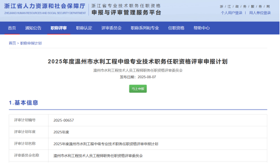 25年度浙江省正高级工艺美术师、省防灾减灾、应急救援中级,温州市水利中级,义乌市生态环境中初级申报计划发布!发表时间:2025-08-07 15:49 01 25年度浙江省正高级工艺美术师申报计划发布 8月6日,浙江省正高级工艺美术师职务任职资格评审委员会发布《2025年度浙江省正高级工艺美术师专业技术职务任职资格评审申报计划》,对25年度浙江省正高级工艺美术师职称申报评审事宜作出相关规定安排。 ![]() 申报时间 个人申报开始时间:2025-08-01 00:00:00个人申报截止时间:2025-09-12 23:59:59单位推荐截止时间:2025-09-25 23:59:59 (个人提交申报后5个工作日内为单位内部公示时间,申报件被退回的不重新计算公示时间。) 申报类型 正高级工艺美术师创意设计专业正高级工艺美术师 职称申报方式 正常申报破格申报转(兼)评标志性业绩直接申报机关调出申报技能人才申报 ![]() 评审范围 1. 传统工艺美术雕塑雕刻工艺、金属工艺、漆器工艺、家具工艺、花画工艺、剪纸工艺、编织工艺、结绣工艺、织毯工艺、印染工艺、珠宝首饰工艺、陶瓷工艺、烟花爆竹工艺及其他民族工艺等。2.创意设计(1)视觉传达设计:含平面设计、广告设计、包装设计、品牌设计、书籍装帧、信息设计等。(2)环境设计:含公共艺术设计、展览展示设计等,不含建筑设计、建筑装饰、风景园林(景观设计)。(3)数字艺术设计:含网络艺术设计、交互设计、虚拟仿真等。(4)工业设计:含工业产品艺术设计、工业产品形态及包装设计、工业产品功能和结构设计等。(5)服装与服饰设计:含服装设计、鞋帽设计、染织设计、妆花设计、首饰设计、时尚设计等。 继续教育学时 满足每年90个学时继续教育要求,申报时以学时登记管理系统导出年度学时卡为依据。申报时核验近三年(2023-2025)学时证明。2024、 2025年度需达到90学时以上,其中专业科目60学时以上,公需科目18学时以上)。 02 25年度浙江省防灾减灾中级申报计划发布 8月6日,浙江省防灾减灾领域工程师职务任职资格评审委员会发布《2025年度浙江省防灾减灾领域工程师专业技术职务任职资格评审申报计划》,对25年度浙江省防灾减灾中级职称申报评审事宜作出相关规定安排。 ![]() 申报时间 个人申报开始时间:2025-08-04 00:00:00个人申报截止时间:2025-09-04 23:59:59单位推荐截止时间:2025-09-17 23:59:59 (个人提交申报后5个工作日内为单位内部公示时间,申报件被退回的不重新计算公示时间。) 申报类型 防灾减灾基础建设防灾减灾技术 职称申报方式 正常申报破格申报转(兼)评标志性业绩直接申报规模企业直接申报机关调出申报技能人才申报 ![]() 评审范围 适用于我省从事防灾减灾基础建设、防灾减灾技术等工作的专业技术人员。 继续教育学时 专业技术人员每年参加继续教育不得少于90学时,其中专业科目不少于60学时,行业公需和一般公需科目不少于18学时。本次申报需提供任现职以来或近5年(2021-2025年)继续教育学习情况 03 25年度浙江应急救援领域中级申报计划发布 8月6日,浙江省应急救援领域工程师职务任职资格评审委员会发布《2025年度浙江省应急救援领域工程师专业技术职务任职资格评审申报计划》,对25年度浙江省应急救援领域工程师职称申报评审事宜作出相关规定安排。 ![]() 申报时间 个人申报开始时间:2025-08-04 00:00:00个人申报截止时间:2025-09-04 23:59:59单位推荐截止时间:2025-09-17 23:59:59 (个人提交申报后5个工作日内为单位内部公示时间,申报件被退回的不重新计算公示时间。) 申报类型 应急救援管理与指挥应急救援技术 职称申报方式 正常申报破格申报转(兼)评标志性业绩直接申报规模企业直接申报机关调出申报技能人才申报 ![]() 评审范围 适用于我省从事应急救援管理与指挥、应急救援技术等工作的专业技术人员 继续教育学时 专业技术人员每年参加继续教育不得少于90学时,其中专业科目不少于60学时,行业公需和一般公需科目不少于18学时。本次申报需提供任现职以来或近5年(2021-2025年)继续教育学习情况 04 25年度义乌市生态环境中初级申报计划发布 8月7日,义乌市生态环境工程技术人员中级专业技术职务任职资格评审委员会发布《2025年度义乌市生态环境专业中(初)级职称评审申报计划》,对25年度义乌市生态环境中初级职称申报评审事宜作出相关规定安排。 ![]() 申报时间 个人申报开始时间:2025-08-08 00:00:00个人申报截止时间:2025-08-22 23:59:59单位推荐截止时间:2025-09-04 23:59:59 (个人提交申报后5个工作日内为单位内部公示时间,申报件被退回的不重新计算公示时间。) 申报类型 监测与分析工程与咨询规划与管理初级职称评审 职称申报方式 正常申报转(兼)评标志性业绩直接申报自评分申报技能人才申报 ![]() 评审范围 在本市企事业单位从事生态环境监测与分析、生态环境工程 与咨询、生态环境规划与管理等工作的专业技术人员。公务员(含依照、参照公务员制度管理的工作人员)不在评审范围内。 继续教育学时 核实近3年(2022-2024年)申报人员的继续教育情况。每年度满足90学时要求。 05 25年度温州市水利工程中级申报计划发布 8月7日,温州市水利工程技术人员工程师职务任职资格评审委员会发布《2025年度温州市水利工程中级专业技术职务任职资格评审申报计划》,对25年度温州市水利工程中级职称申报评审事宜作出相关规定安排。 ![]() 