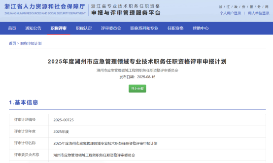 25年度浙江省特种设备高级、省高级审计师、金华环境中初级、丽水质量医药中初级、湖州应急管理领域中初级申报计划发布!发表时间:2025-08-15 16:12 01 25年度浙江省特种设备高级申报计划发布 8月14日,浙江省特种设备专业高级工程师职务任职资格评审委员会发布《2025年度浙江省特种设备专业高级工程师职务任职资格评审申报计划》,对25年度浙江省特种设备高级职称申报评审事宜作出相关规定安排。 ![]() 申报时间 个人申报开始时间:2025-08-13 00:00:00个人申报截止时间:2025-09-22 23:59:59单位推荐截止时间:2025-10-10 23:59:59 (个人提交申报后5个工作日内为单位内部公示时间,申报件被退回的不重新计算公示时间。) 职称申报方式 正常申报转(兼)评标志性业绩直接申报自评分申报机关调出申报技能人才申报 ![]() 申报类型 锅炉容器起重电梯 继续教育学时 近3年(2023-2025)线下学时和其他网络平台学时汇总填报提交各市主管部门或省局直属单位审核认定 02 25年度高级审计师申报计划发布 8月14日,浙江省高级审计师职务任职资格评审委员会发布《2025年度浙江省高级审计师职务任职资格评审计划》,对25年度浙江省高级审计师职称申报评审事宜作出相关规定安排。 ![]() 申报时间 个人申报开始时间:2025-08-14 00:00:00个人申报截止时间:2025-08-29 23:59:59单位推荐截止时间:2025-09-11 23:59:59 (个人提交申报后5个工作日内为单位内部公示时间,申报件被退回的不重新计算公示时间。) 职称申报方式 正常申报破格申报转(兼)评标志性业绩直接申报规模企业直接申报 ![]() 继续教育学时 申报人员需上传 2022 年度、2023 年度和 2024 年度继续教育学时证明,每年不得少于 90 学时,其中专业科目不少于 60 学时,审计公需科目和一般公需科目不少于 18 学时。 高级审计师职务任职资格申报人员为参加 2020 年度至 2024 年度高级审计师资格考试且达到国家合格标准,并持有效《高级审计师资格考试成绩合格证书》的人员。 03 25年度金华市生态环境专业中初级申报计划发布 8月15日,金华市生态环境工程技术人员工程师职务任职资格评审委员会发布《2025年度金华市生态环境专业中、初级专业技术职务任职资格评审计划》,对25年度金华市生态环境专业中初级职称申报评审事宜作出相关规定安排。 ![]() 申报时间 个人申报开始时间:2025-08-16 00:00:00个人申报截止时间:2025-09-04 23:59:59单位推荐截止时间:2025-09-17 23:59:59 (个人提交申报后5个工作日内为单位内部公示时间,申报件被退回的不重新计算公示时间。) 职称申报方式 正常申报转(兼)评自评分申报机关调出申报技能人才申报 申报类型 环境监测与分析环境工程与咨询环境规划与管理初级职称评审 ![]() 评审范围 在本市企事业单位从事生态环境监测与分析、生态环境工程与咨询、生态环境规划与管理等工作的在职在岗专业技术人员。公务员(含参照管理工作人员)不在评审范围内。 继续教育学时 继续教育学时要求作为职称申报必备条件。申报人员须提供近三(2023-2025)继续教育情况,且每年度不得少于90学时,其中专业科目不少于60学时,一般公需科目和行业公需科目不少于18学时(其中行业公需科目不少于12学时,一般公需科目不少于6学时)。 04 2025年度丽水市质量技术基础和医药行业中初级申报计划发布 8月15日,丽水市质量技术基础和医药行业专业技术人员中级专业技术职务任职资格评审委员会发布《2025年度丽水市质量技术基础和医药行业技术人员中初级职称评审工作计划》,对25年度丽水市质量技术基础和医药行业中初级职称申报评审事宜作出相关规定安排。 ![]() 申报时间 个人申报开始时间:2025-08-15 00:00:00个人申报截止时间:2025-09-02 23:59:59单位推荐截止时间:2025-09-15 23:59:59 (个人提交申报后5个工作日内为单位内部公示时间,申报件被退回的不重新计算公示时间。) 申报类型 质量技术基础(质量、计量、标准化、特种设备)医药行业(医药工程、食品质量技术) 职称申报方式 正常申报 破格申报 转(兼)评 技能人才申报 评审范围 全市企事业单位及其他社会组织中从事质量、计量、标准化、特种设备、医药工程和食品质量技术专业技术工作的人员。 ![]() 继续教育学时 专业技术人才每年继续教育不少于 90 学时,其中专业科目不少于 60 学时,公需科目不少于18 学时(一般公需科目不少于 12 学时)。专业技术人才申报职称时,其符合继续教育学时要求的年份应当与所申报职称规定的年限要求一致,并且申报当年和前一年度连续两年均符合继续教育学时要求的才能申报。 社保要求 申报人员原则上需从 2025 年 5 月起在丽水市内缴纳社保,且当前处于正常参保缴费状态。 05 25年度湖州市应急管理领域专业中级申报计划发布 8月15日,湖州市应急管理领域工程师职务任职资格评审委员会发布《2025年度湖州市应急管理领域专业技术职务任职资格评审申报计划》,对25年度湖州市应急管理领域职称申报评审事宜作出相关规定安排。 ![]() 申报时间 个人申报开始时间:2025-08-14 00:00:00个人申报截止时间:2025-09-13 23:59:59单位推荐截止时间:2025-09-26 23:59:59 (个人提交申报后5个工作日内为单位内部公示时间,申报件被退回的不重新计算公示时间。) 申报类型 防灾减灾基础建设防灾减灾技术应急救援管理与指挥应急救援技术 职称申报方式 正常申报破格申报转(兼)评