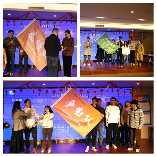 年会上李凯明总经理亲自为各个小组颁发旗帜,组员上台喊出自己的组名和口号,以昂扬的姿态接过旗帜,希望各小组能在新的一年里,以龙马精神继续扬帆远航,勇往直前!